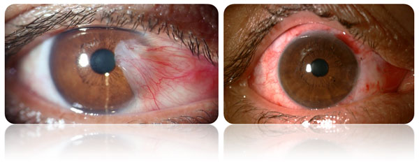 Figure 1. Preoperative (left) and postoperative day 1 slit lamp apperarance of a patient operated with the diagnosis of ptergym.